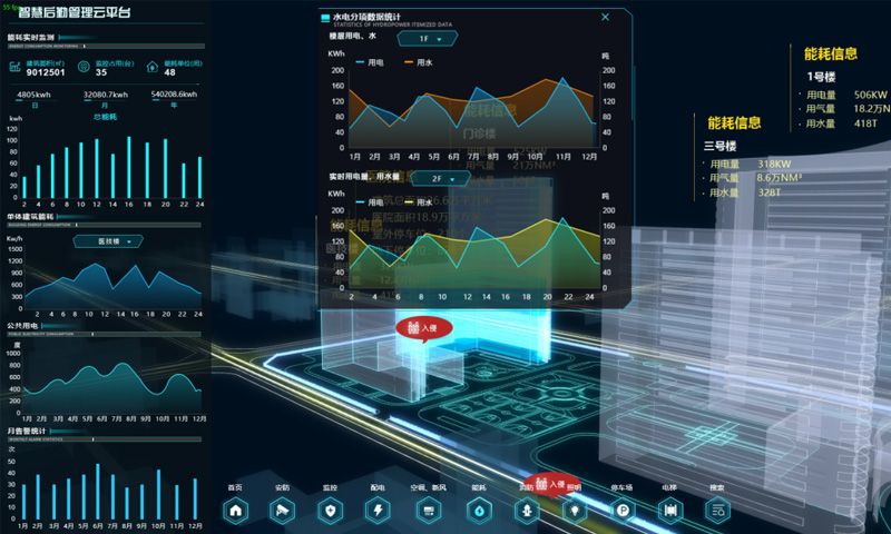 能對建筑內的水、電、氣能耗進行數據實時采集、匯總、分析,并上傳至管控中心,使用戶能源管理者直觀了解到本單位耗能情況,為用能管理提供數據支撐,可上傳至當地政府能耗平臺
